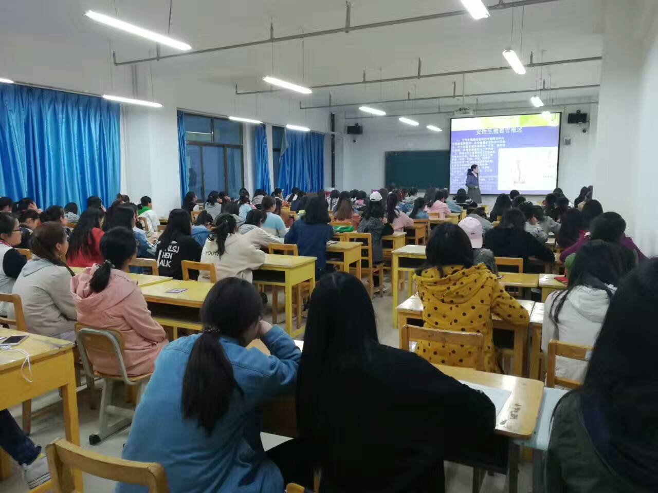 4月19日晚,应兰州文理学院师范学院学生会邀请,甘肃玛丽亚妇科医院资深妇科医师冯金霞开讲以“青春飞扬 健康相伴”为主题的女大学生健康讲座,来自学院120余名大学生认真聆听了讲座。